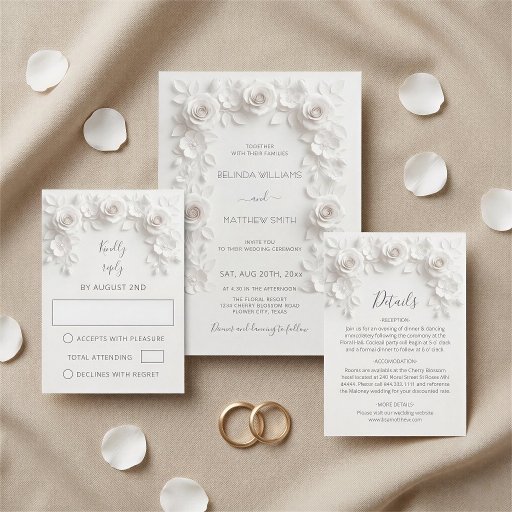 White 3D Roses Frame Wedding Simple Invitation