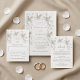 This elegant minimalist contemporary wedding invitation features a white 3 dimensional roses frame. With a scannable qr code for your wedding website on the backside.