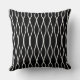 White Abstract Wavy Geometric Pattern on Black Cushion
