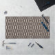 White Abstract Wavy Geometric Pattern on Brown Desk Mat