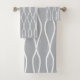 White Abstract Wavy Geometric Pattern on Grey Bath Towel Set