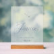 A beautifully minimalist white acrylic “Favors” wedding sign designed with soft dusty blue calligraphy for an understated fine-art aesthetic. The frosted white transparency paired with cool blue lettering creates a sophisticated, airy look suitable for elegant, modern, coastal, garden, or blue-themed weddings. Ideal for styling your favors table and elevating your reception decor with a cohesive, luxurious feel.