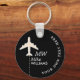 White aeroplane on (custom colour) black-keychain, personalised with name and text... special for pilots and airport professionals