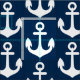 White Anchor on Navy Blue Background Pattern Fabric