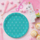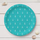 Paper plates featuring a white anchor pattern with an editable background colour (click customise and change the background colour). They make great paper plates for a beach or nautical theme celebration.