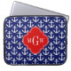 White Anchors Navy Blue, Red 3 Initial Monogram Laptop Sleeve