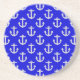 White Anchors On Blue Background Coaster