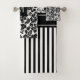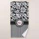 Modern black and white damask with geometric stripes pattern. Custom monogram