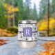 This insulated wine tumbler has a stylish, feminine floral pattern with a hand-drawn aesthetic. This classic black-and-white pattern has a modern feel softened with sketch look line art. Personalise this cute insulated wine tumbler with the owner's initial in purple/lavender for extra personal detail. This design has six (6) different accent colours: red, pink, yellow, green, blue, and purple to highlight your monogram. Choose your favourite colour. This custom wine tumbler with your monogram is the perfect accessory for art walks, gallery strolls, wine tastings, parties, and outdoor events.