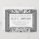 These birthday party invitations feature an intricate geometric frame, geometric patterns, a black and white colour palette, and other stylistic details all inspired by Art Deco and the roaring twenties. You can customise the sample text fields to your liking.