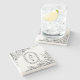 White and Black Greenery Wedding Monogram Stone Coaster