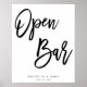 White and black Open Bar wedding reception sign (poster) with customisable text - you can add bride's and groom's name and wedding date. Dimensions of the sign print (poster) are 16 inches by 20 inches.