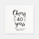 Minimalist personalised retirement party napkins in white and black. On the top it says Cheers to, which you can fill out with the number of years needed as well as the guest of honour's name.
