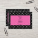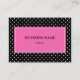 Black and white polka dot pattern. White polka dots on black and in the middle there is a hot pink rectangle to add your information.