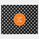 Elegant white polkadot geometric pattern over customisable black background colour. Orange circle accent with customisable monogram.