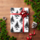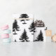 A modern pattern of holiday spruce trees in black on white in repeat pattern.