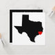 The red heart is located in the Houston area, but you place the shape where your city or town is located. You can choose the colour of the state shape by changing the background colour to match your wedding palette. You can also copy and paste the state shape outline onto the back of the invitation, if you would prefer it on both sides. Create your own custom invite by changing the modern script font style. Customise the font size to make room for more information about your wedding venue. There are many lovely font styles to choose from. The Texan state map shape customised or adapted from a vector clip art image Officially licensed © Graphics Factory.com.