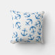 White and Blue Anchor Front with A Solid Blue Back Throw Pillow
