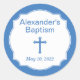 Personalised round Baptism / Christening stickers are a great way to customise your favour, seal your invitations or thank you cards or use for gift labels. This sweet design features a blue cross and your text inside a beautiful blue frame.