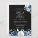 white and blue floral black wedding invitations
