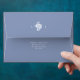 Elegant and chic. This dusty blue and white flat wedding envelope exudes a fresh, modern and youthful tone. This design includes a contemporary set of fonts and elegant floral couple monogram, against a dusty blue jacket and crisp white interior. For this item you may want to use return address labels in the same dusty blue colour background, which are also available in the same collection. alternatively hand-write guest address with a white pen at the front.