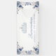 White and Blue Floral Quinceanera party banner. Designed with delicate blue and white flowers accented with a sparkling diamond and light blue gem crown. This beautiful banner is a perfect addition to your quinceanera decor.