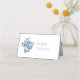 This blue and white folded wedding place card / table number exudes a fresh, modern and youthful tone. The card features a table number and floral illustration at the front and back in a chic dusty blue, against a crisp white background. This item forms part of a full wedding suite with matching and complimentary stationary.