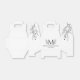 Wedding favour box, whimsical, minimalistic, modern, customisable black script typography. Botanical branches accent with a white background.