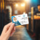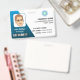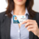 This professional looking company ID tag is for the manager of a company. The design is corporate looking with a blue abstract detail on white and a place for the company logo and bar code.