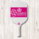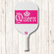 White and Bright Pink Queen Crown Modern Monogram Pickleball Paddle