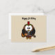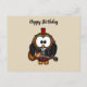 White and brown owl playing a guitar with red hat postcard
