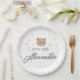 White and Brown Watercolor Cute Baby Shower Paper Plate