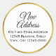 This white and faux gold change of address sticker can be personalised with your desired text (shown: New Address). The text is black script. The gold look border is not foil.