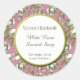 A custom soap or baking sticker with faux gold script and block letters on an elegant antique floral pattern of vintage etched roses in white and golds on a dusty rose background.