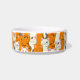 This is a heavy, durable bowl decorated with Tibbies of many colors, the perfect size for hungry/thirsty Tibs. The design is interesting and printing clear.