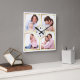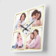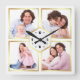 White and Gold 4 Pictures Family Photo Collage Square Wall Clock