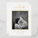 White And Gold Calligraphy Photo Save The Date Foil Invitation. This custom modern wedding design can easily be personalised with your own wedding details.