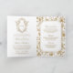 White and Gold Chinoiserie Crest QR Code Wedding Invitation