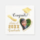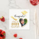 Create stylish white and gold graduation napkins for the class of 2025 graduate with a heart-shaped photo, Congrats saying, and grad's cap and diploma illustrations. Please, personalise with the graduate's name and surname, upload a custom photo, and type a year before ordering.