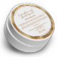 This cosmetics label features a decorative faux foil border with space for your business name, website, product name, scent, ingredients, directions for use and company contact information. This label measures 3 inches (25.4 mm) in diameter and is suitable for low profile jars with lids measuring at least 3 inches (25.4 mm) in diameter. This label makes a great choice for packaging beauty products in jars that require large circular labels like sugar scrubs, body butters, and thick lotions and creams.