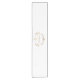 Elegant white cloth table runner, with graphics of a gold tone flourish and crown text area and custom text. Personalise the text to this lovely addition to your dining table.