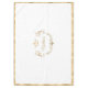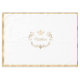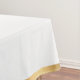 Elegant white cloth tablecloth, with and gold tone border and graphics of a gold tone flourish and crown text area and custom text. Personalise the text to this lovely addition to your dining table.