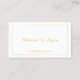 White and gold modern elegant stylish design featuring name in gold calligraphy font style and information in gold professional font style with gold border.