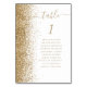 The left-hand edge of this elegant modern wedding table number card features a gold faux glitter border. The word "table" appears in gold-coloured whimsical handwriting script on a white background. Add the names of your guests who are assigned to each table.