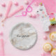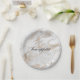 Chic all occasion paper plate done in a white and gold marbled look. Black text, in the middle of the plate, reads bon appétit, and can be personalised to read what you want. Matching party supplies are available.
