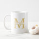 featuring personalised gold monogram in classic serif font style with box of name in the middle of monogram.
