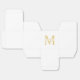 featuring personalised monogram in gold classic serif font style with box of name in the middle of monogram on white background.