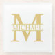 featuring gold personalised monogram in classic serif font style with box of name in the middle of monogram on white background.