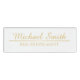 This name tag features name in gold classic script font style and title in gold professional serif font style on white background.