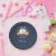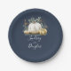 White and Gold Pumpkin Fall Harvest Navy Blue Paper Plate